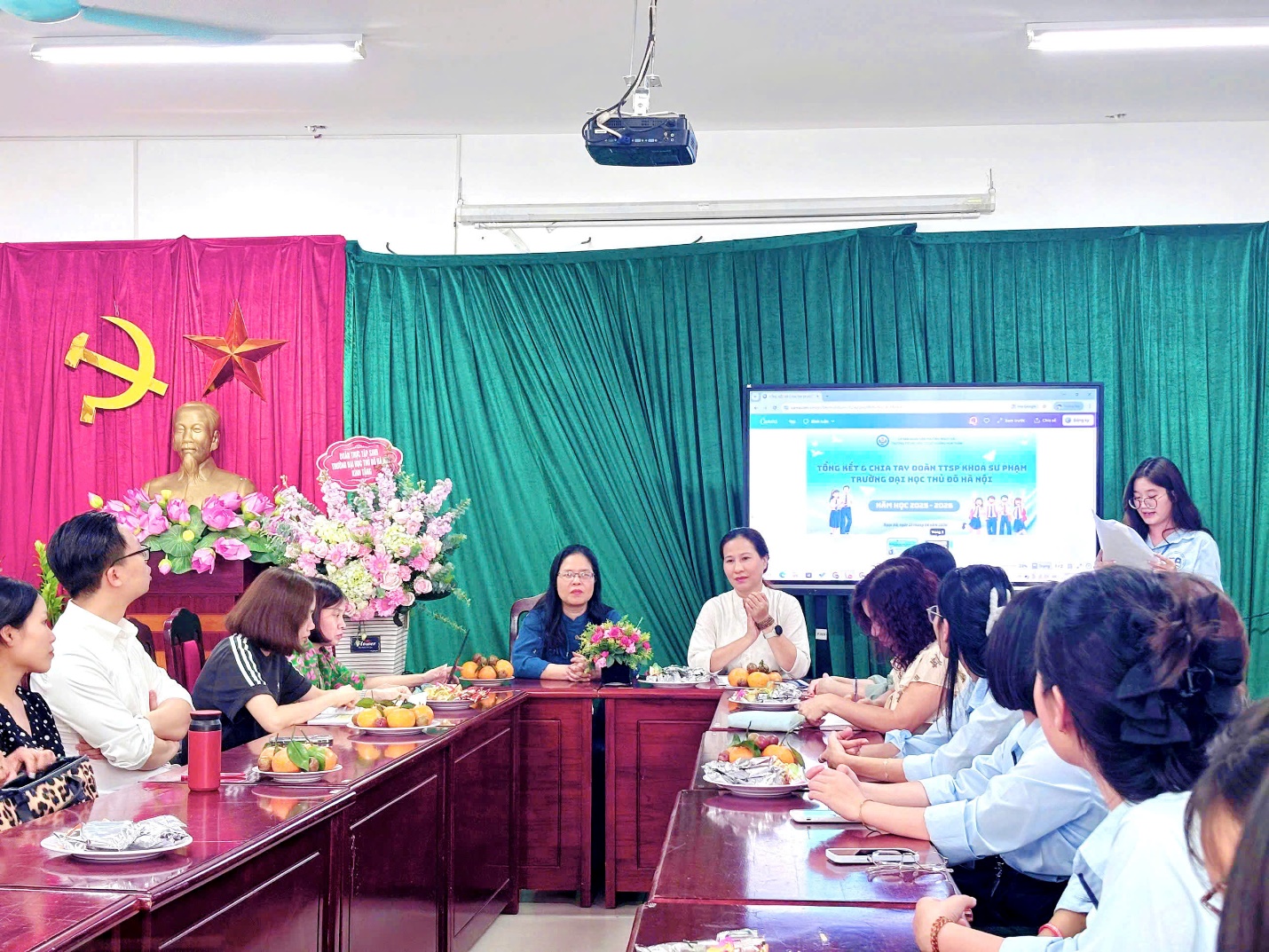 Toàn cảnh buổi tổng kết và chia tay đoàn thực tập sư phạm Trường Đại học Thủ đô tại THCS Hoàng Hoa Thám.