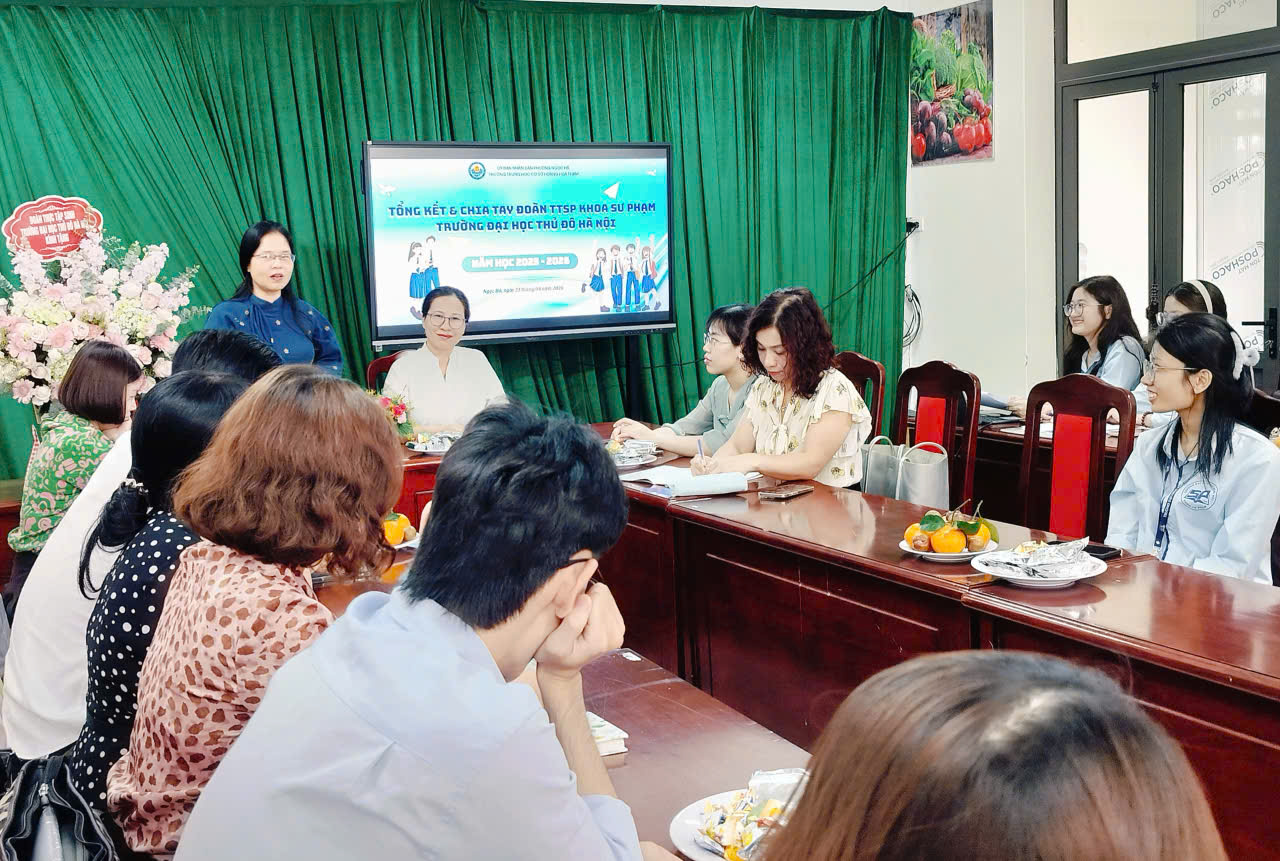 Ngày 23/04/2026, tại phòng Hội đồng Sư phạm, trường THCS Hoàng Hoa Thám đã tổ chức buổi chia tay Đoàn thực tập sư phạm đến từ Trường Đại học Thủ đô Hà Nội trong không khí trang trọng, ấm áp và giàu cảm xúc. Đây không chỉ là dịp nhìn lại chặng đường thực tập ý nghĩa mà còn là khoảnh khắc ghi dấu sự trưởng thành của các giáo sinh trên hành trình trở thành những người thầy, người cô trong tương lai.