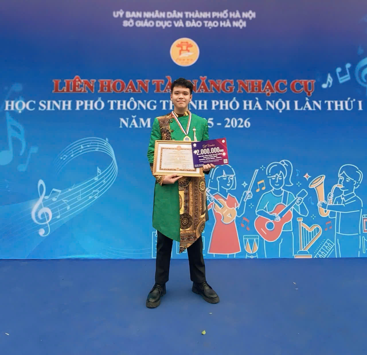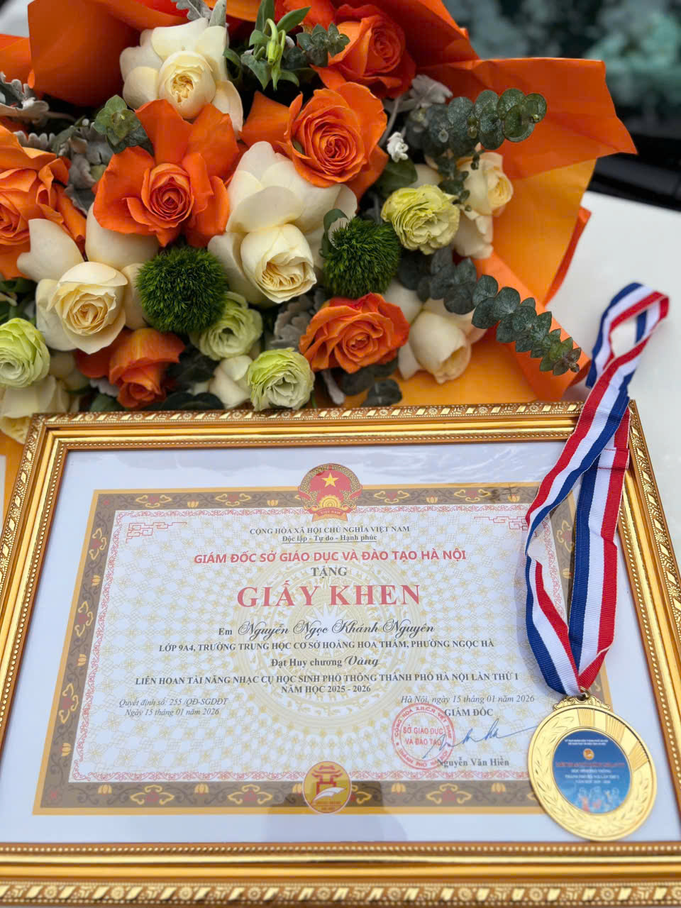 Với phần biểu diễn giàu cảm xúc, kỹ thuật vững vàng và phong cách trình diễn tự tin, chững chạc, em Nguyễn Ngọc Khánh Nguyên đã xuất sắc giành Huy chương Vàng – Bảng D, khối THCS trên toàn thành phố Hà Nội, để lại dấu ấn sâu đậm trong lòng Ban Giám khảo và khán giả.