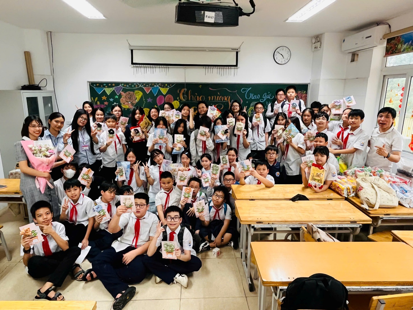 Hoạt động đầu tiên khiến cả lớp vô cùng hào hứng là làm bưu thiếp tặng mẹ. Mỗi bạn tự tay chuẩn bị những tấm bưu thiếp nhỏ xinh, trang trí bằng những hình vẽ, màu sắc và lời chúc chân thành nhất. Có bạn vẽ những bông hoa rực rỡ, có bạn cẩn thận viết từng dòng chữ nắn nót để gửi tới mẹ lời cảm ơn và tình yêu thương. Trong không khí yên tĩnh nhưng ấm áp ấy, chúng em đều nghĩ về mẹ – người luôn chăm sóc, yêu thương và dành những điều tốt đẹp nhất cho mình. Ai cũng mong rằng khi nhận được tấm bưu thiếp nhỏ bé này, mẹ sẽ cảm thấy thật vui và hạnh phúc.