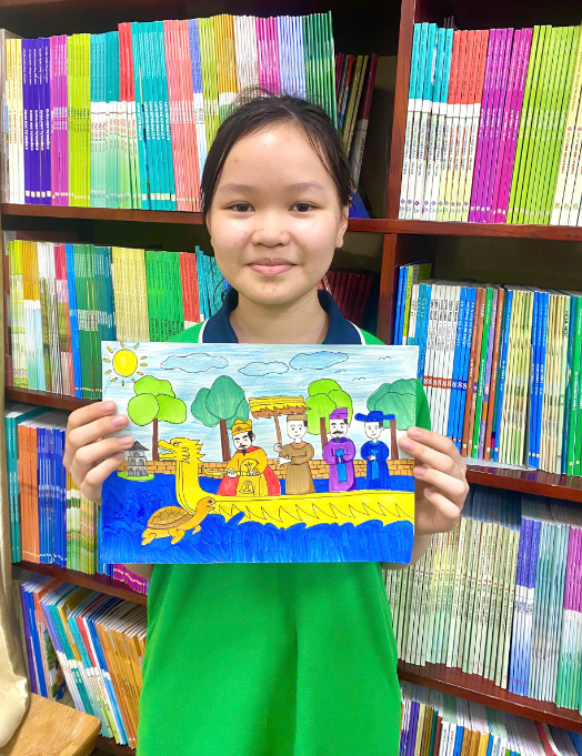 Không chỉ đọc và cảm nhận, các bạn học sinh còn được thỏa sức sáng tạo qua hoạt động vẽ tranh với hai chủ đề gần gũi mà sâu sắc: “Người em yêu quý nhất” và “Nhân vật em yêu thích trong sách, truyện.” Từng bức tranh hồn nhiên, rực rỡ sắc màu là những lời tri ân chân thành gửi tới mẹ, cô giáo, bà và chị – những người phụ nữ dịu dàng mà kiên cường, đã chở che và nâng bước ta khôn lớn mỗi ngày.