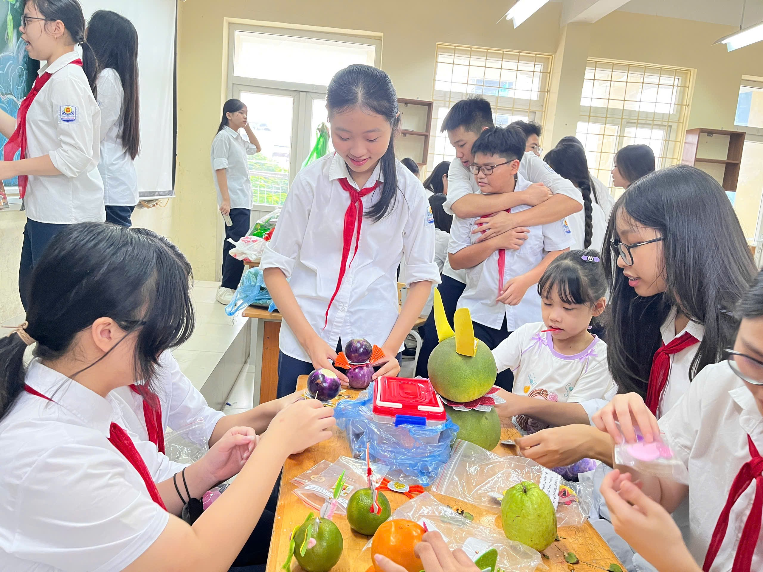 Mỗi mâm quả được tạo hình khéo léo là một tác phẩm nghệ thuật nhỏ, phản chiếu sự sáng tạo và đoàn kết của từng nhóm bạn.